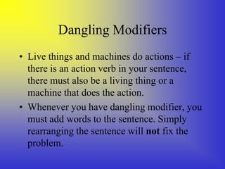 Misplaced And Dangling Modifiers A Modifier Is A Word Or Phrase
