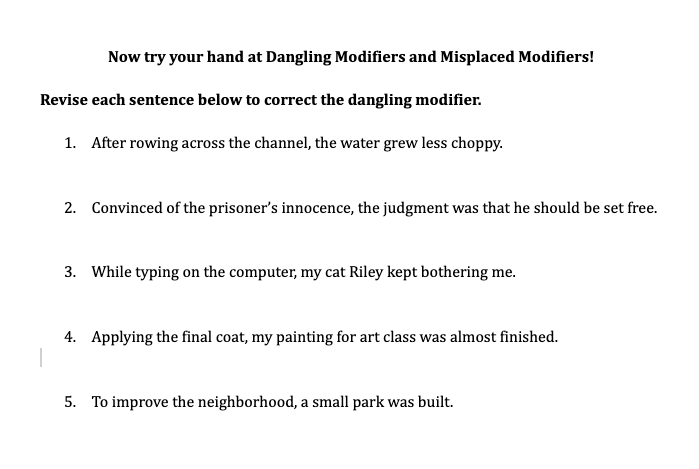Solved Now Try Your Hand At Dangling Modifiers And Misplaced Chegg Com